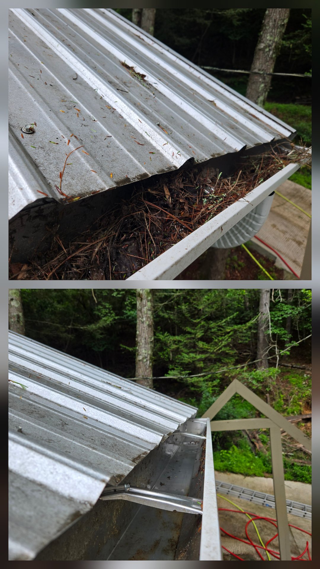 This cabin rental in Ellijay, GA, was in need of our house washing, deck cleaning, gutter brightening, and gutter cleaning services before the first clients arrived for some trout fishing and relaxation by the river. With everything freshly cleaned and ready, the cabin was transformed into a welcoming retreat for the guests.