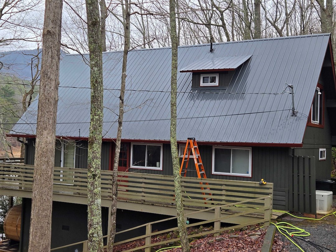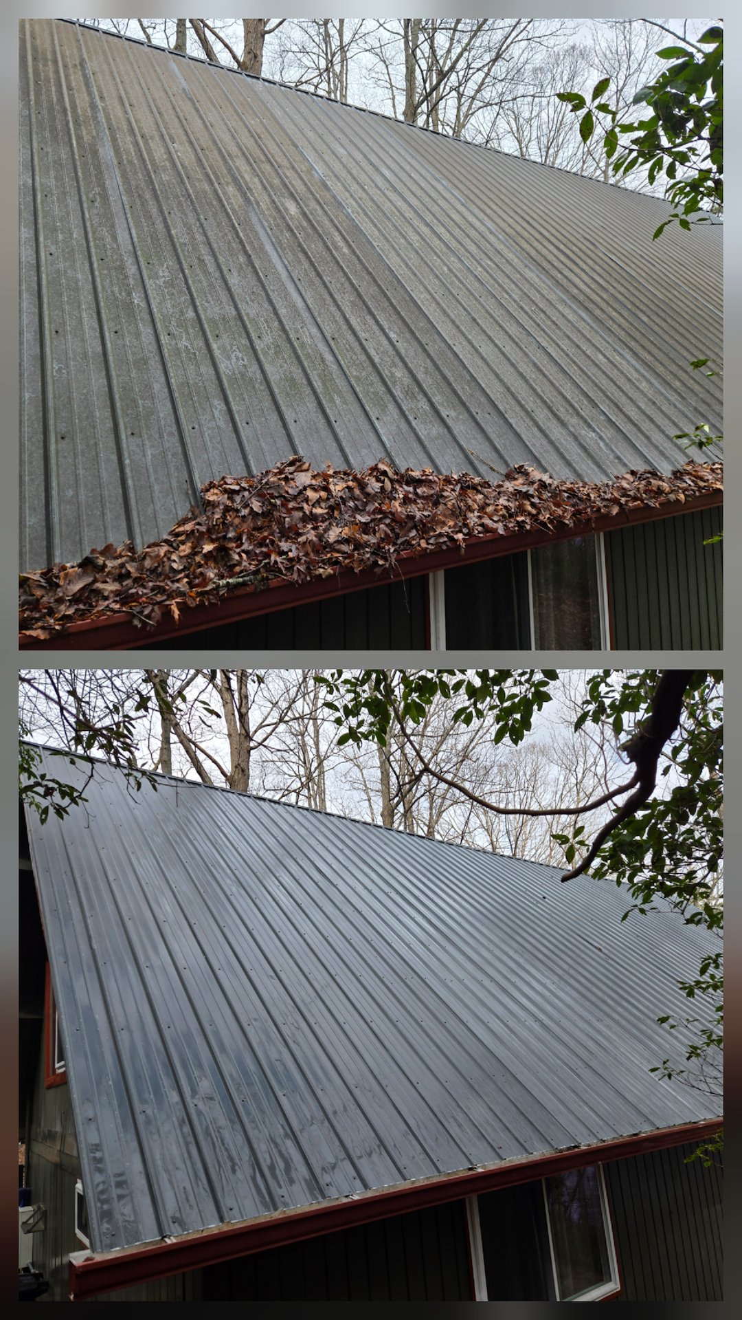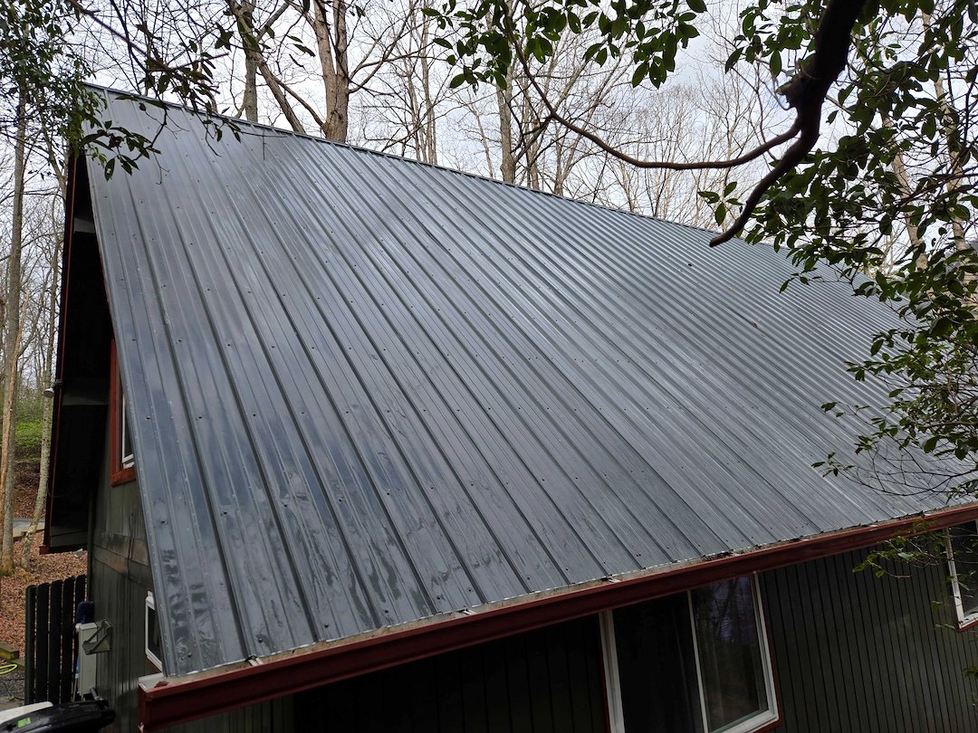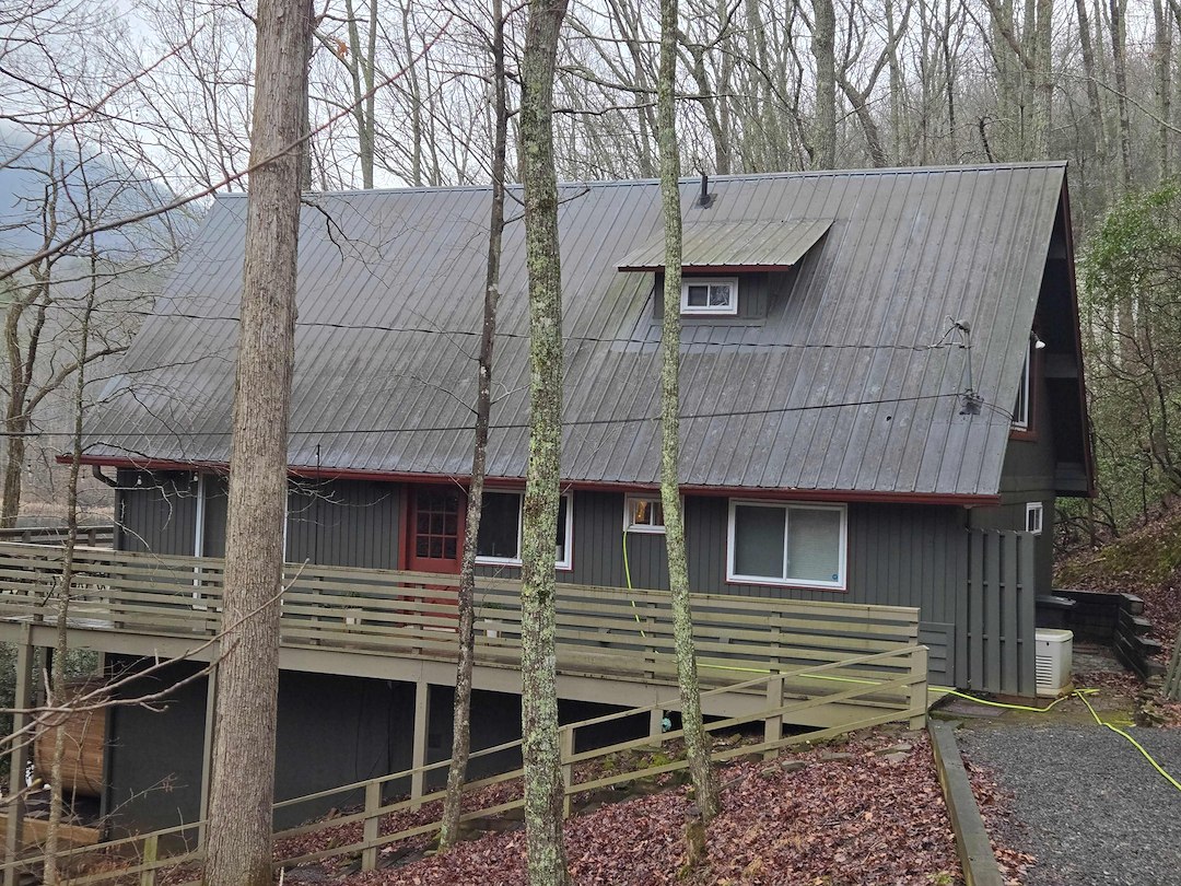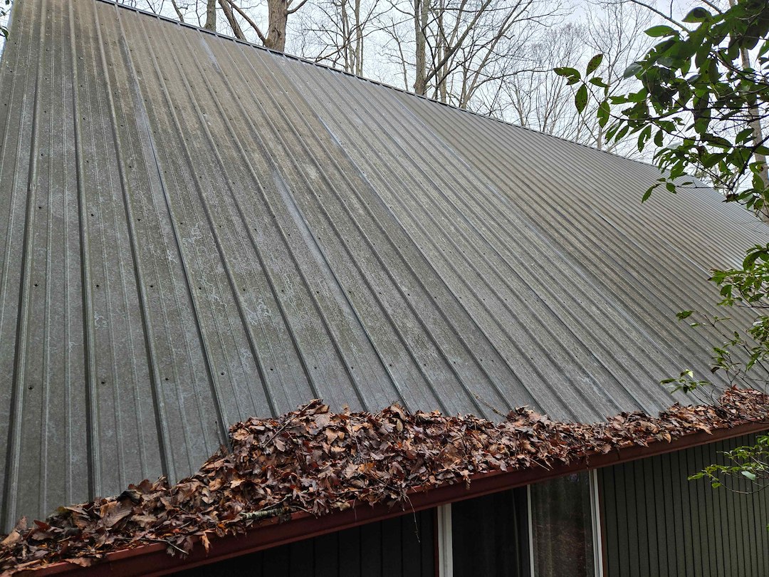 The homeowners of this Airbnb in Cleveland, GA, requested our metal roof cleaning service. The roof had never been cleaned, resulting in a significant buildup of organic matter that had become unsightly.