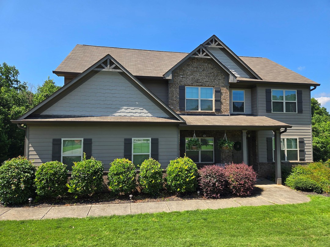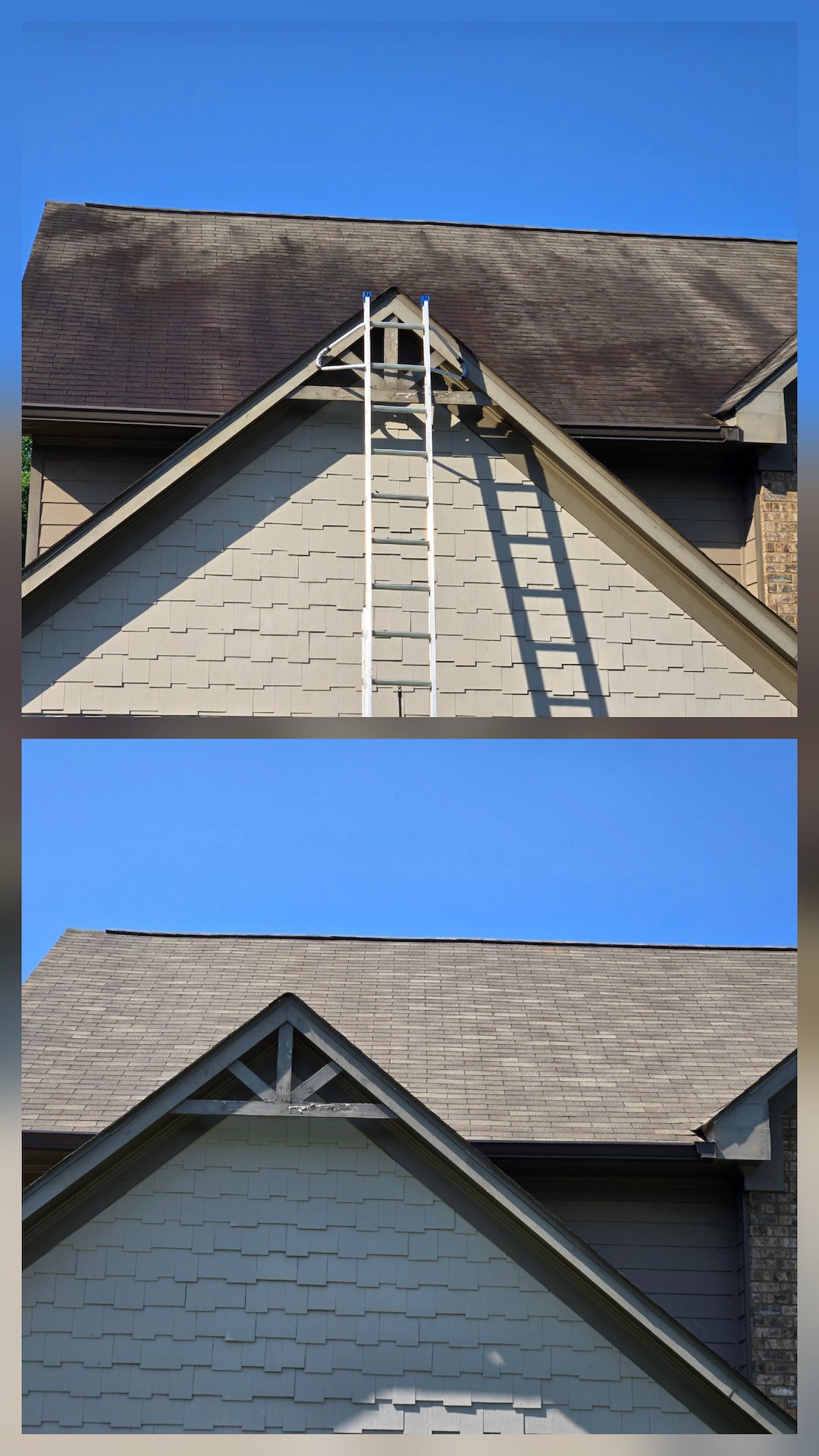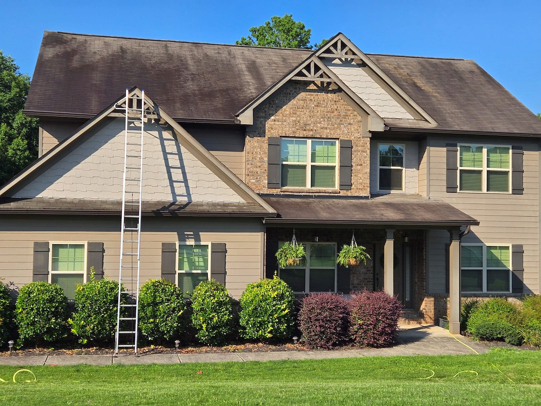 The owners of this 2-story home in Cumming, GA, called to find out if their roof could be cleaned, or was it too late and they needed a new roof? I let them know that I would be able to restore its original color once again. I explained that with our soft-washing cleaning method, I could effectively and safely remove the buildup of dirt, algae, and moss that had accumulated over time. This process would enhance the home's curb appeal and extend the life of their roof, saving them money in the long run. They were very relieved and scheduled an appointment.